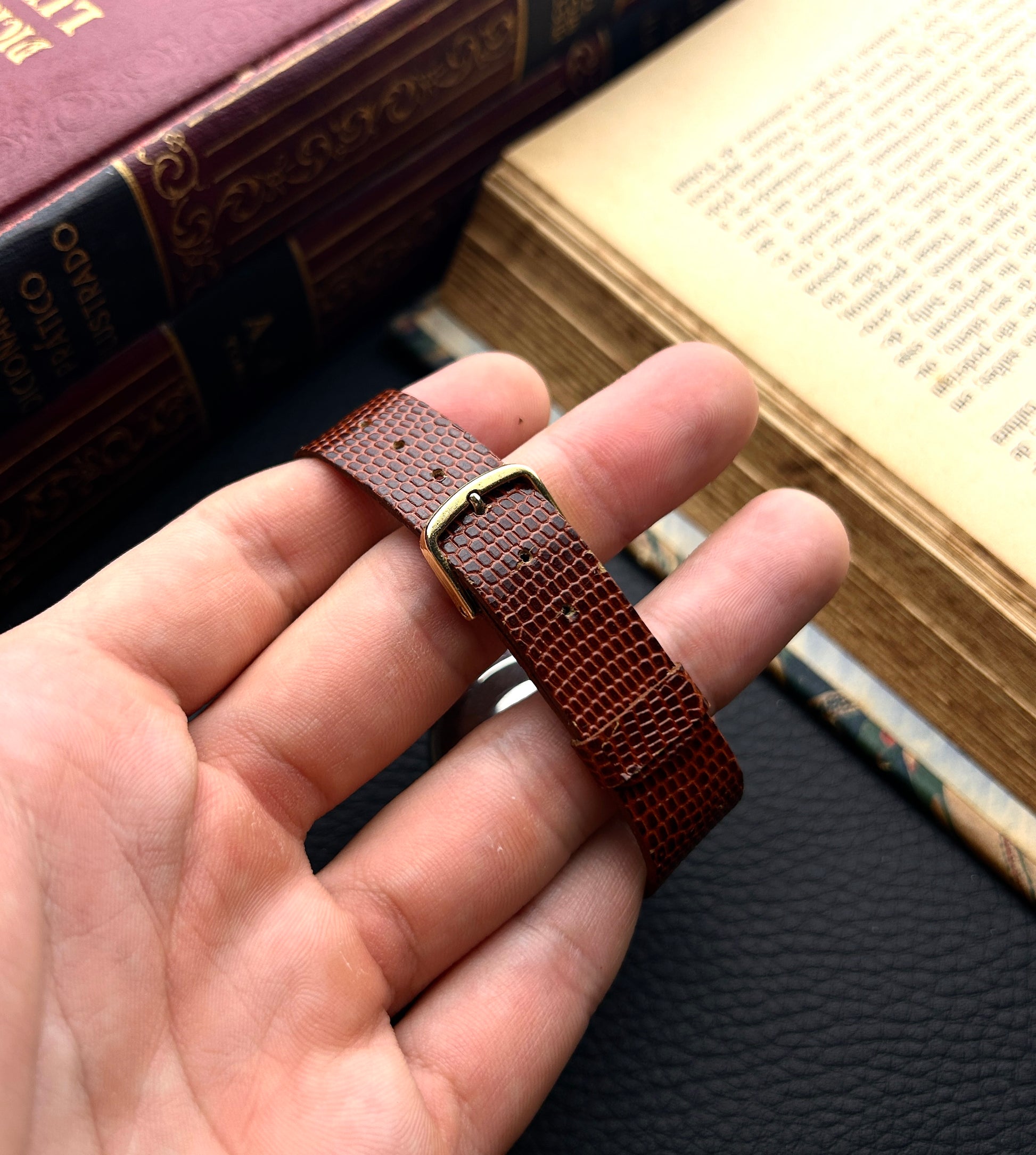 • pulseira de couro marrom texturizada (substituta), veste pulsos de até 20 cm