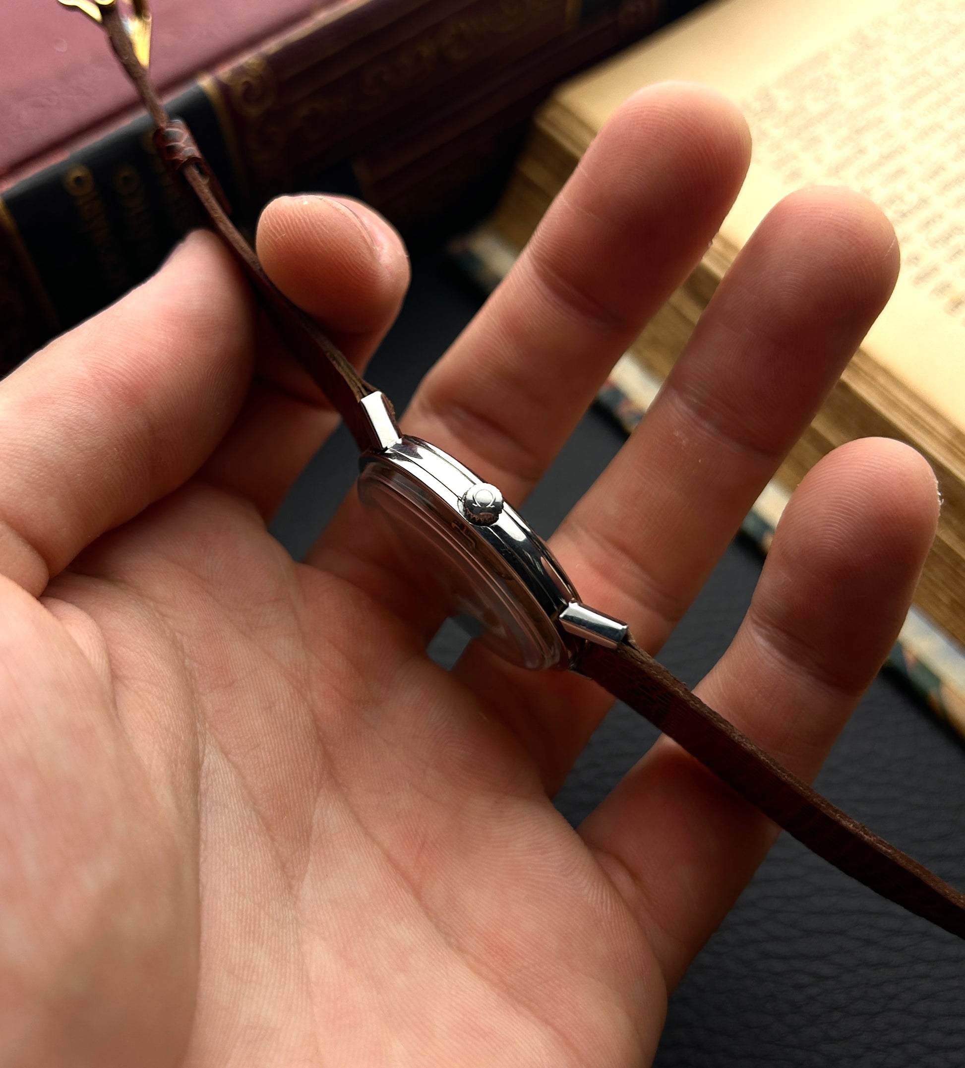 Este clássico Omega encapsula a elegância refinada da relojoaria suíça dos anos 1960. Seu mostrador champagne original, com leve pátina uniforme, confere à peça um charme autêntico e atemporal. O design fino e discreto, combinado com a pulseira marrom texturizada, faz deste relógio uma escolha perfeita para quem aprecia o estilo vintage em sua forma mais pura.
