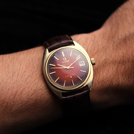 Este Omega Constellation vintage é uma joia da relojoaria suíça dos anos 60/70, combinando prestígio, precisão e um mostrador gradiente vermelho espetacular, com padrão pie-pan e estrela aplicada. Trata-se de um verdadeiro chronometer certificado, símbolo máximo da excelência da Omega.