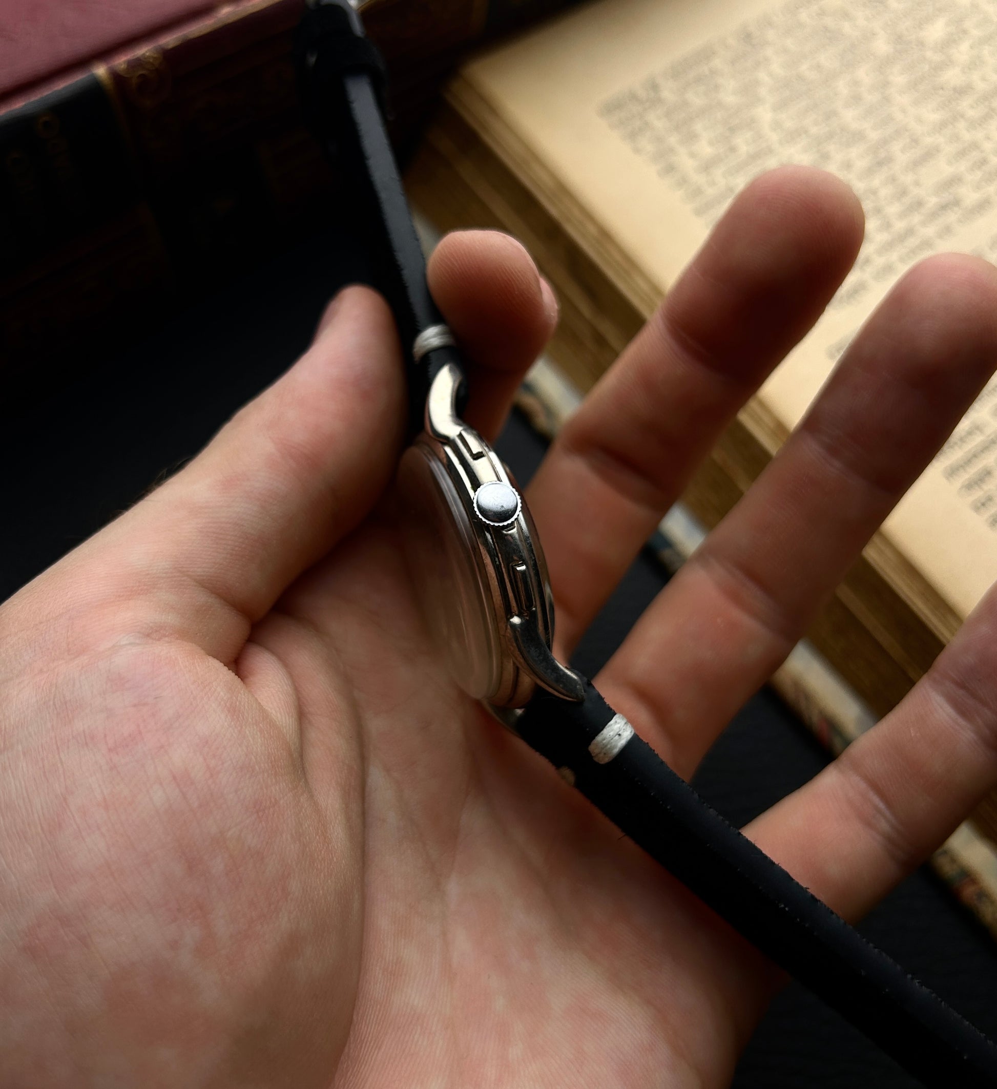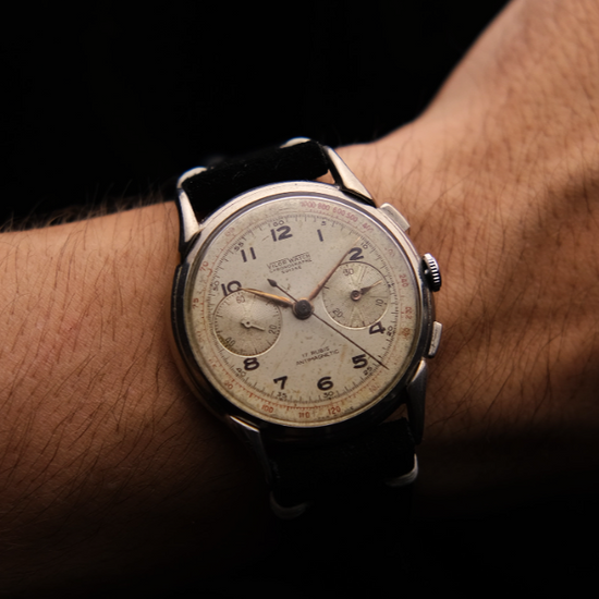 Um relógio histórico em excelente estado para sua idade, preservando mostrador e componentes originais. O Vilor Watch Chronographe é uma peça de coleção autêntica — elegante, equilibrada e fiel à tradição dos cronógrafos suíços dos anos 1940. Ideal para quem valoriza design histórico, mecânica clássica e pátina com personalidade.